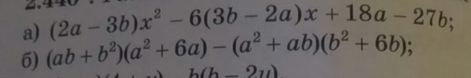 х²(2а-3в)+6х(2а-3в)+9(2а-3в)=(2а-3в)(х²+6х+9)