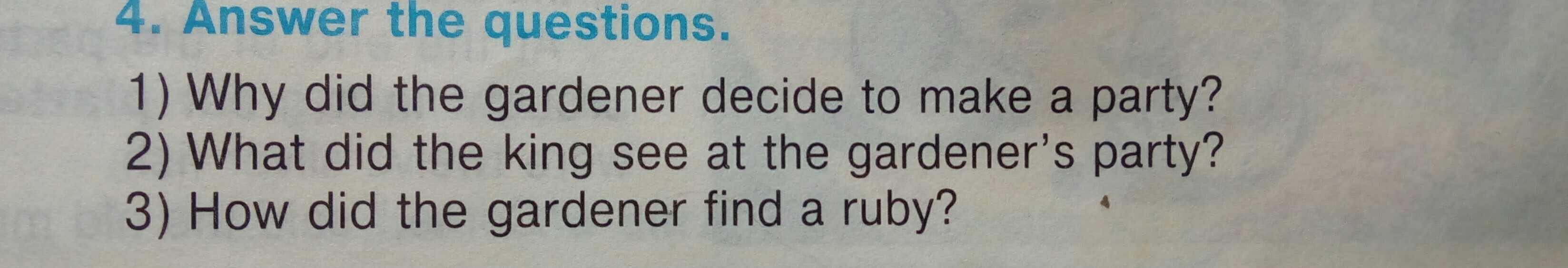 Отвечать на вопросы.1) Почему садовник решил устроить вечеринку?2) что видел король на вечеринке садовника?3) Как садовник нашел Рубин?