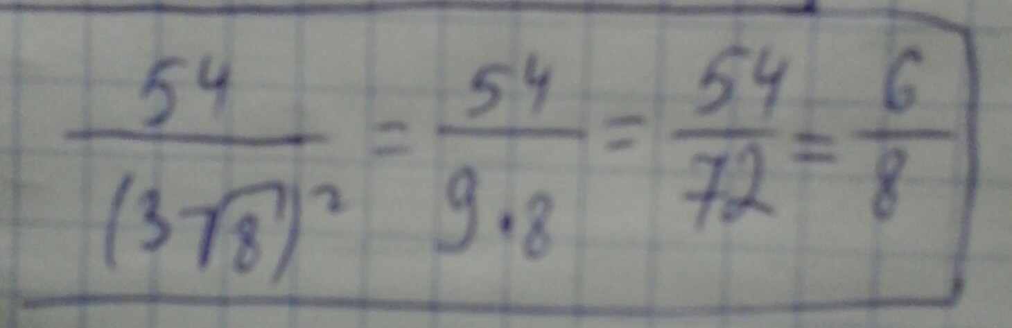 54/ (3√8)² = 54/ (9 * 8) = 54 / 72 = 0,75