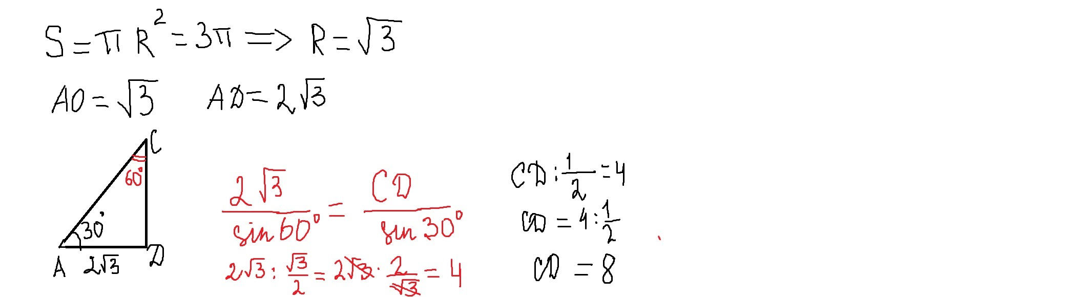 зная площадь круга,находим его радиус АО,а затем диаметр АД.