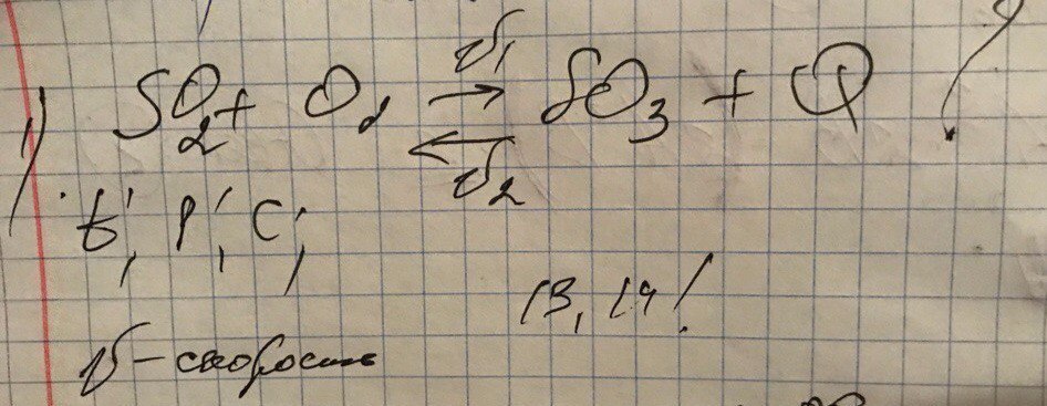 При повышении концентрации исходных веществ ( SO2 или О2) химическое равновесие смещается в сторону продуктов, т .е. в сторону прямой реакции. При понижении наоборот.