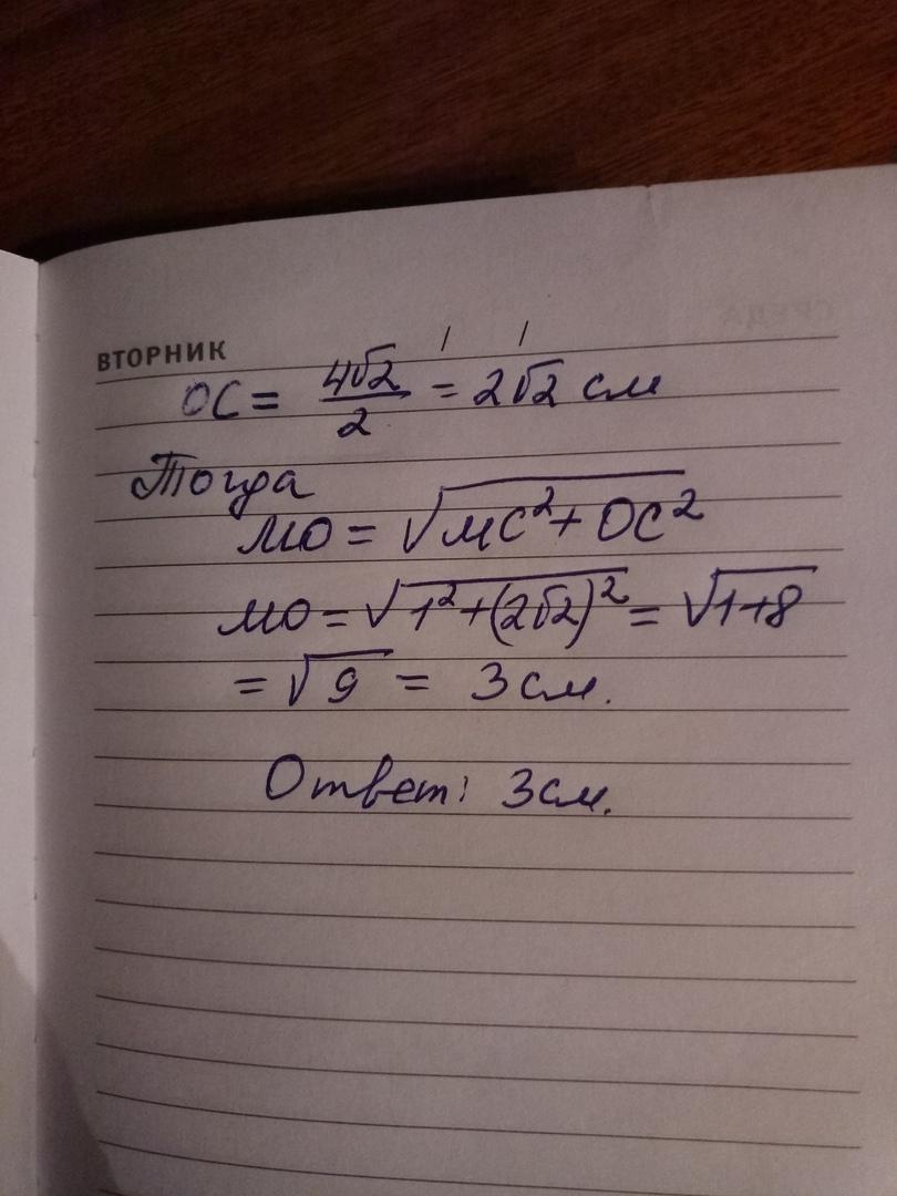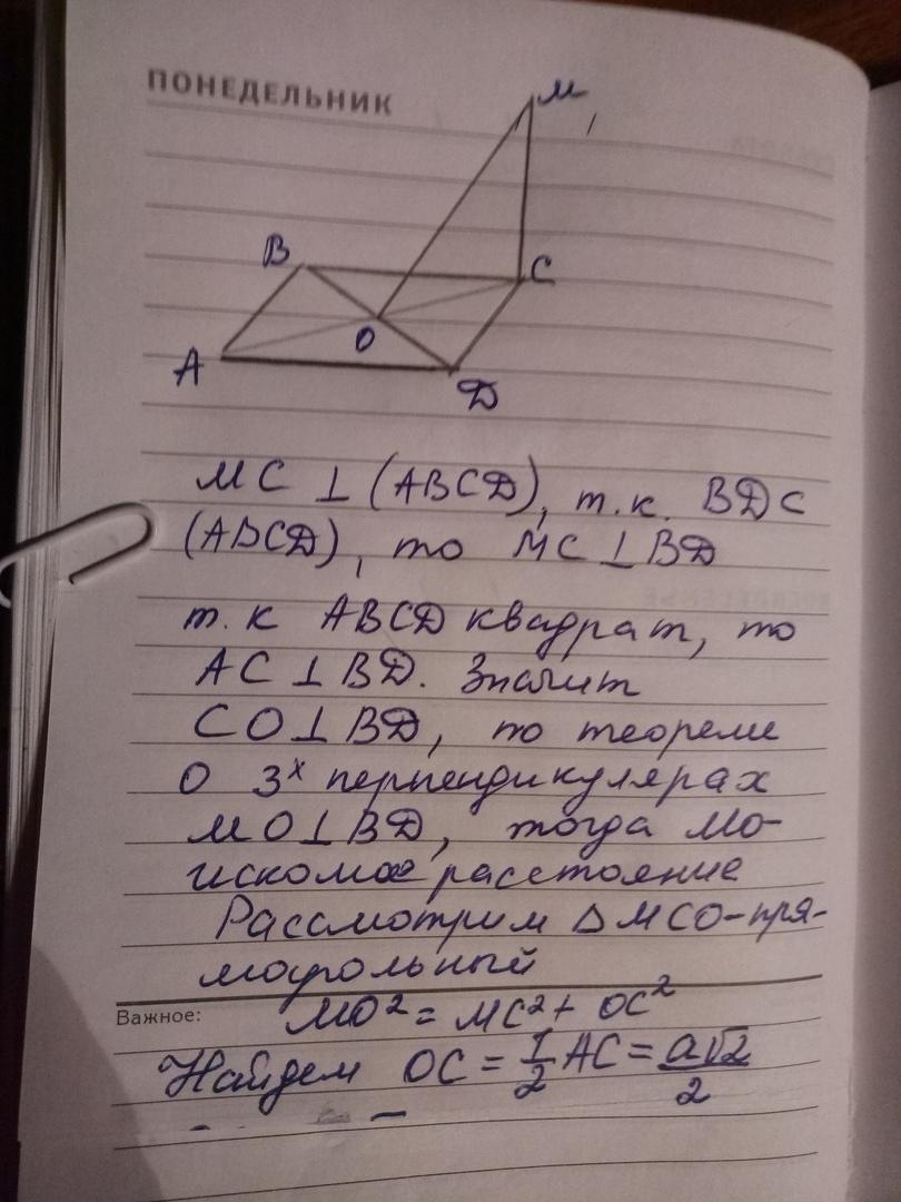 Через вершину С квадрата ABCD проведено пряму МС, яка перпендикулярна площині квадрата.