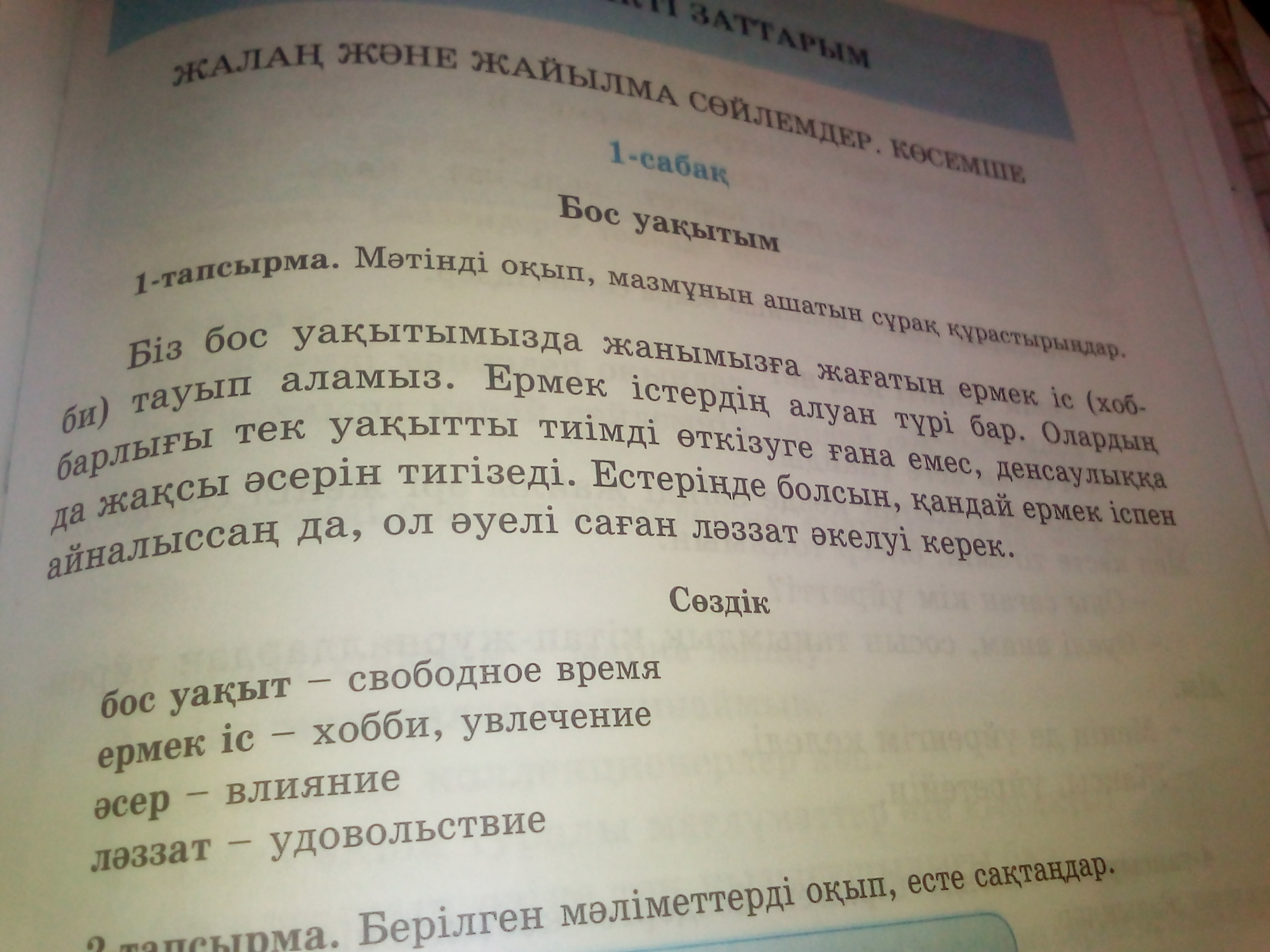 5.Естеринде болсын, кандай ермек испен айналысан да, ол Ол саган не истёк керек?