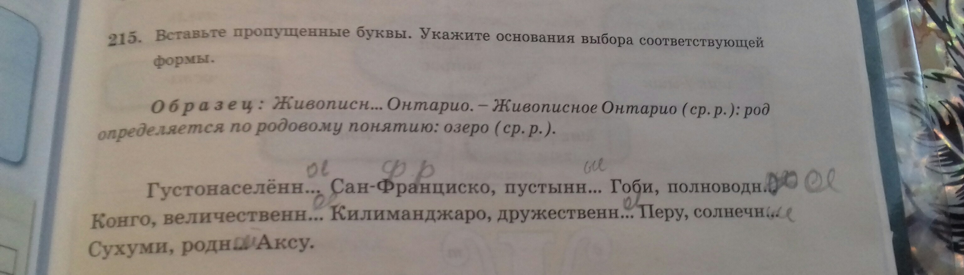 Густонаселённый Сан-Франциско- м.р.(город); пустынная Гоби- ж.р.(пустыня); полноводная Конго- ж.р.(река); величественная Килиманджаро- ж.р.(гора); дружественное Перу- ср.р.(государство); солнечный Сухум- м.р.(город); родной Аксу- м.р.(город)