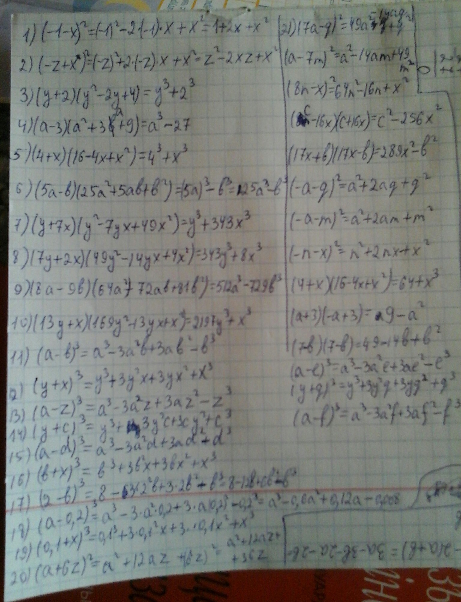 107. (y+7x)(y²–7yx+49x²)
