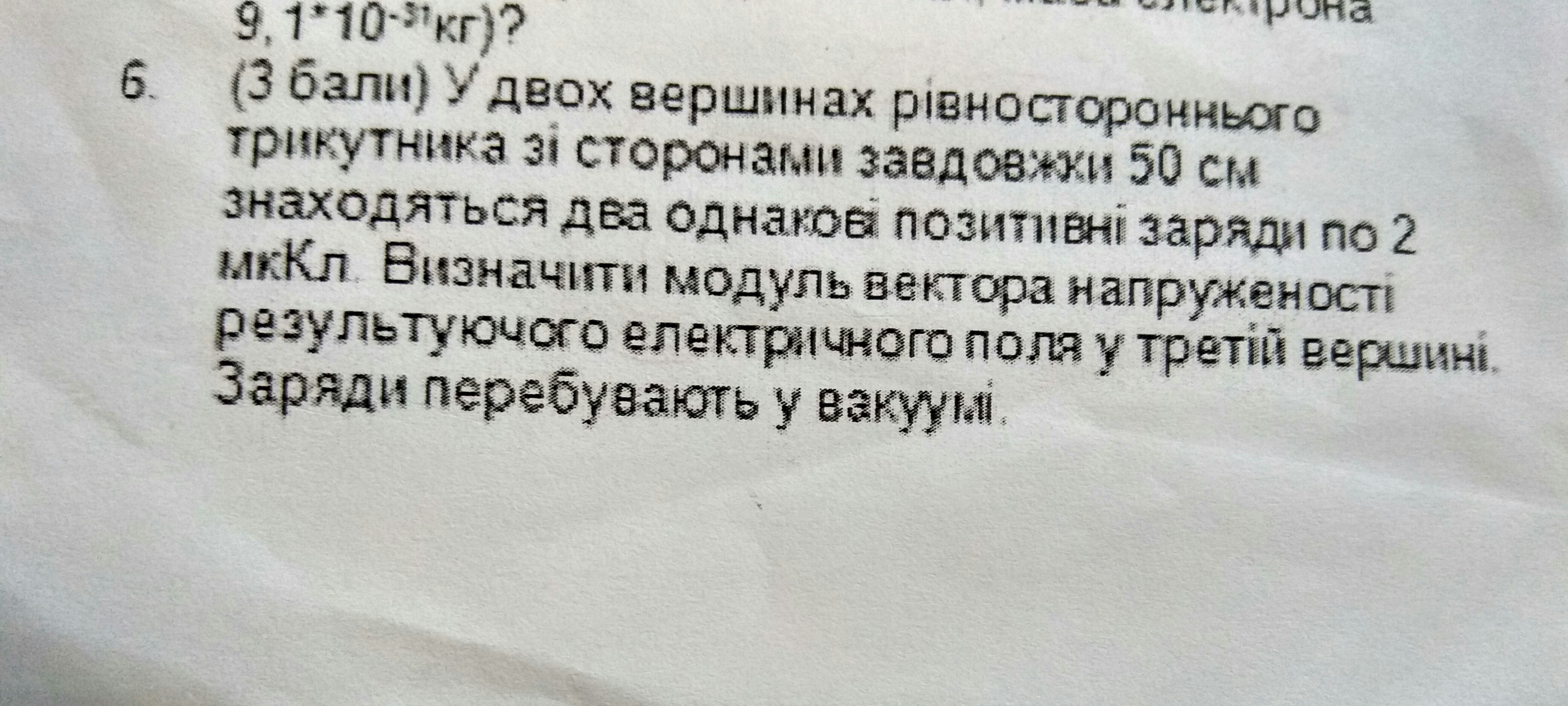 Eo=2*k*q*²cos(α/2)/r²=2*9*10^9*2*10^-6*cos30/0.5²=1.25*10^5 В/м