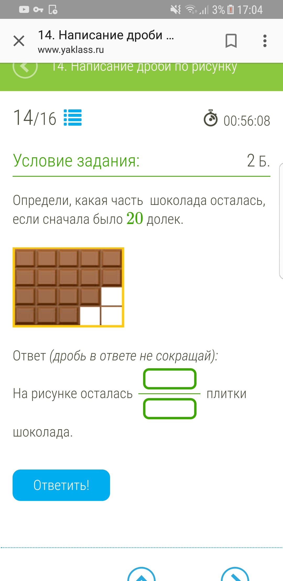 Будет 3/20 ха если честно то эта дробь и так не сокращается!