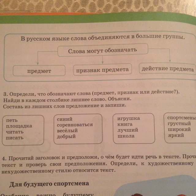4-ый спортсмены имя существительное отвечает на вопрос кто ? остальные прлагательные