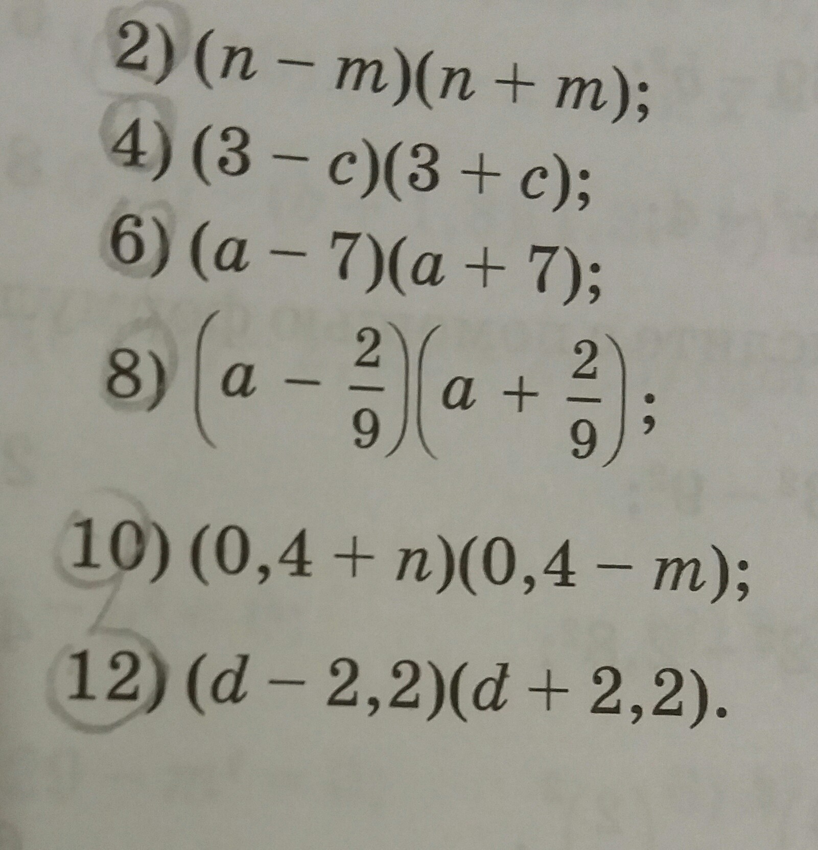 10) (0,4+n)(0,4-m) = 0,16 - 0,4m + 0,4n - nm