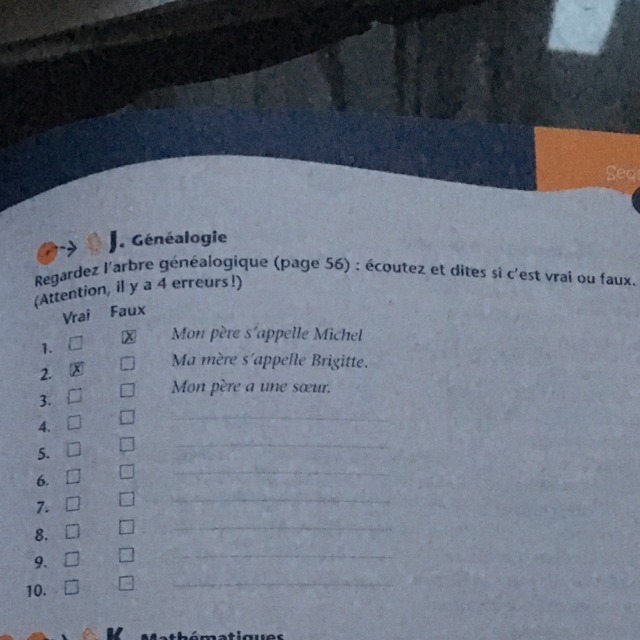 на стр 56 у тебе дерево генетическое ты должен смотреть как зовут и его родителей и сверять с тем что в задинии правда плюс не правда минус