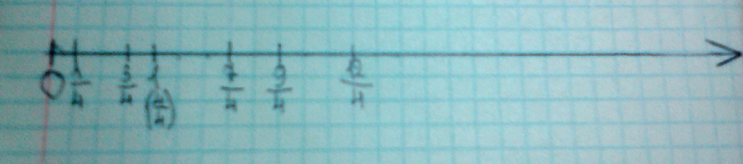 начертите координатный луч и отметьте на нём точки,координаты которых равны:1/4,3/4,4/4,7/4,9/4,12/4