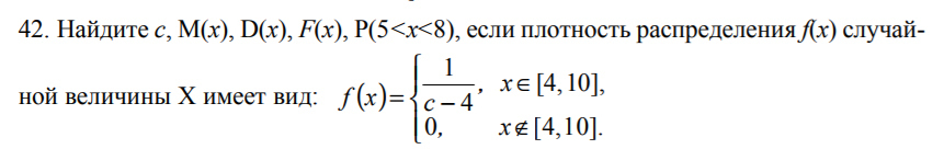 Найдите c, M(x), D(x), F(x), P(5 ной величины X имеет вид: