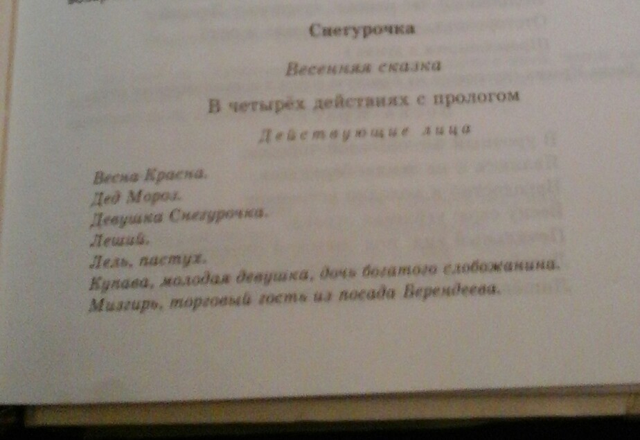Снегурочка гибнет, ибо должны же погибнуть подснежник и даже позднее его живущий ландыш (недаром и царь Берендей сравнивает Снегурочку с ландышем) ; Мизгирь гибнет, как всякий, кто хочет жить только с весной, в жажде вечного существования только одной весны. Он изменил лету и солнечности: крепкий и сильный человек, он идет против природы и разливает свою страстную энергию на призрачную видимость! Но должны жить Купава и Лель, и недаром, вопреки формальным требованиям, конец пьесы ничего не говорит нам о конечной судьбе их: перед ними еще лето, осень, зима. Они живут с природой. Такова мысль ("слава солнцу"!) "Снегурочки" Островского.