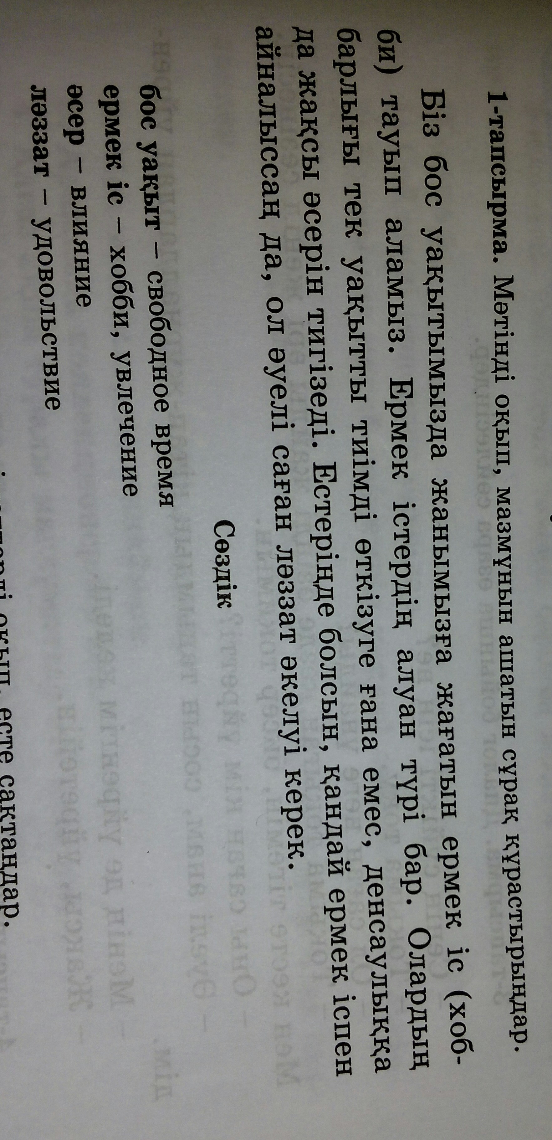 Ермек іспен айналыссаңда ол саған не әкелуі керек