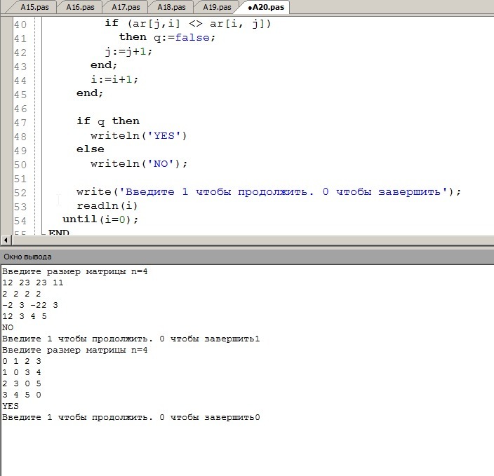 Программа должна выводить слово yes для симметричного массива и слово no для несимметричного.