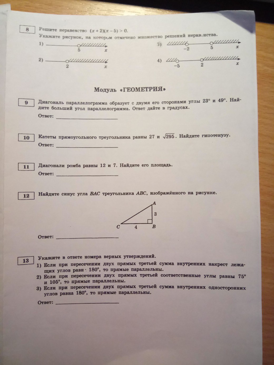12)Для того, что бы найти синус угла сначала нужно найти гипотенузу, так как синус это отношение противоположного катета к гипотенузе