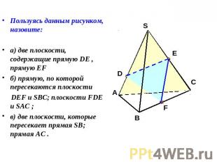 б) по прямой EF пересекаются плоскости DEF.SBC;
