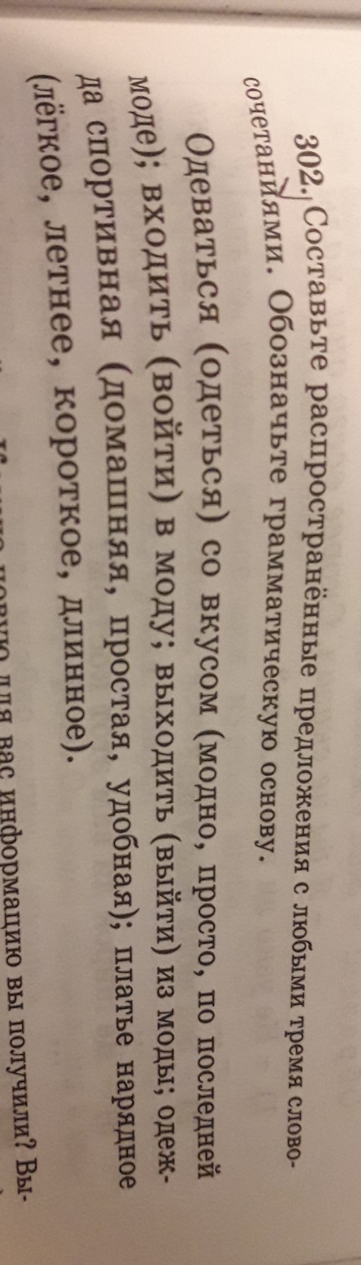 Составьте распространенные предложения с любыми двумя сочетаниями обозначьте их грамматическую основу( 302 упр) помогите пожалуйста даю 20 балла!!!