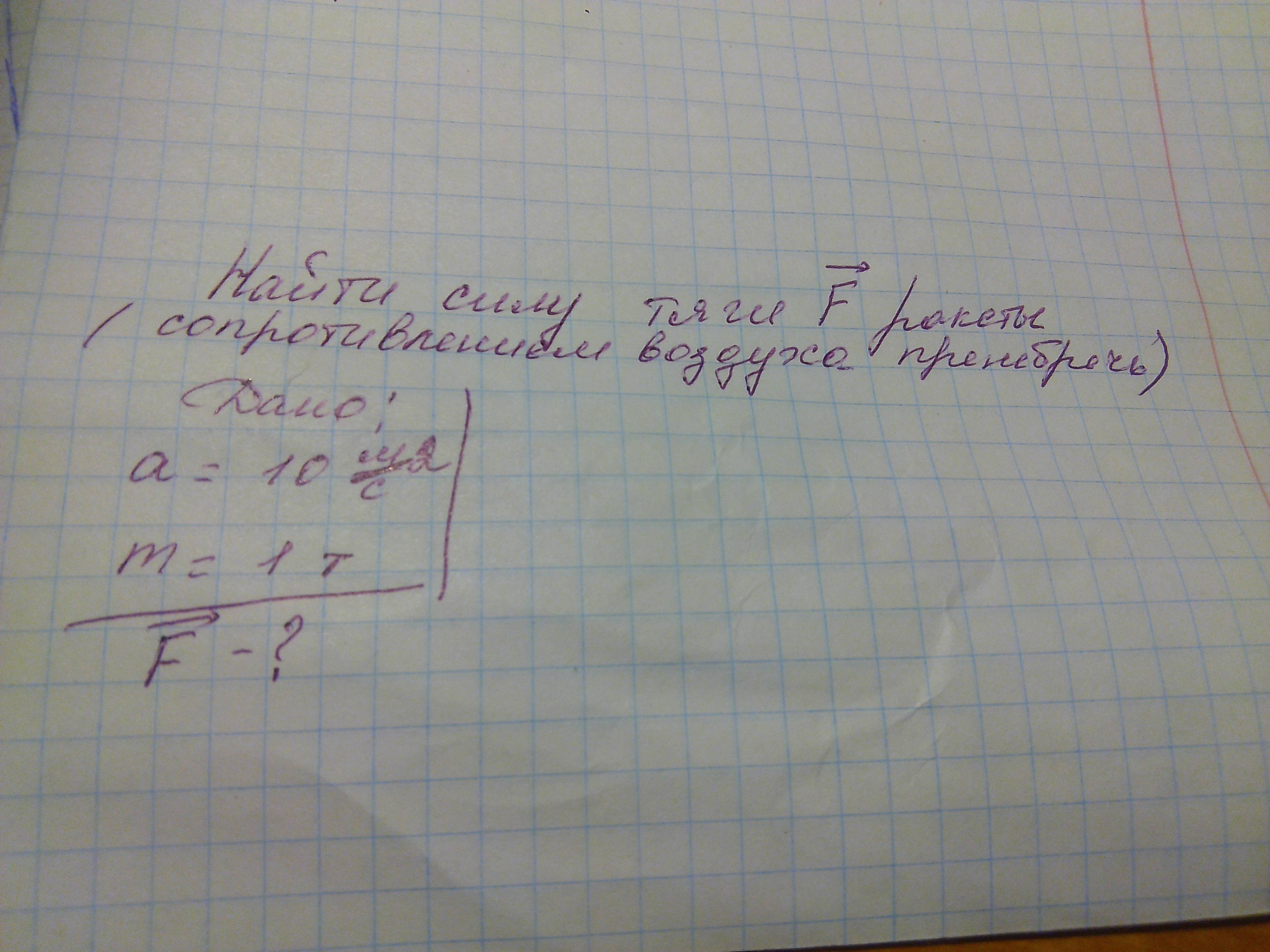 Раз ракета двигается, наверное, вверх, то сила тяги во-первых, равна весу ракеты Р=mg, а во-вторых разгоняет ракету. F=am,