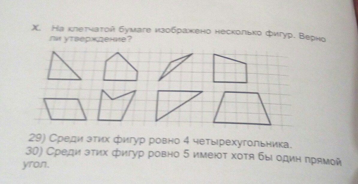 29) среди этих фигур только 4, 5, 8 - четырехугольники ( утверждение не верно)