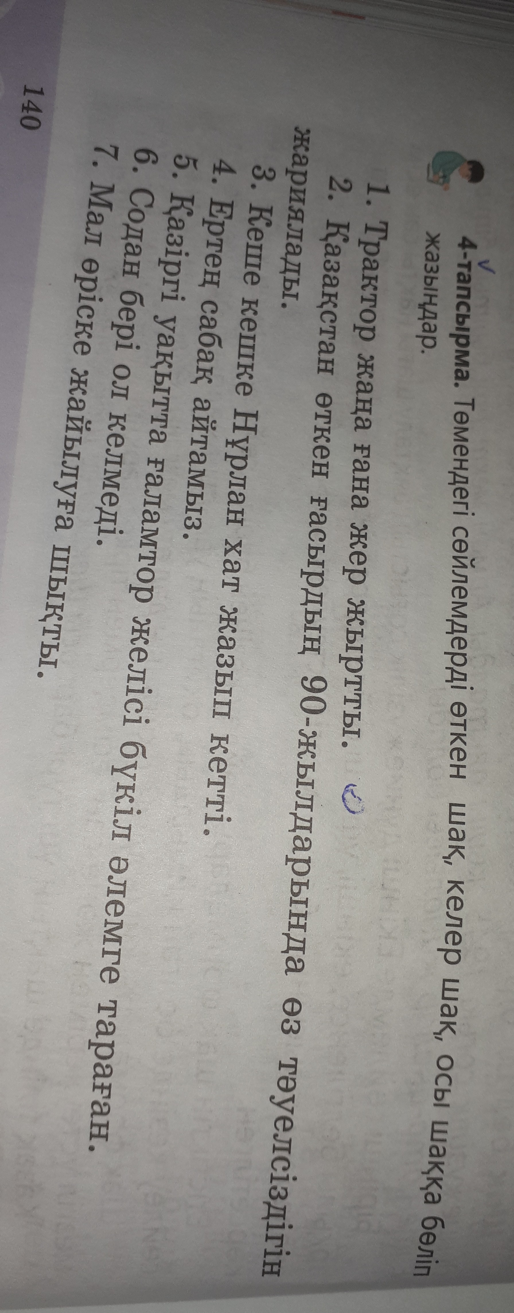 Өткен шақ - 2, 3, 6 сөйлемдер