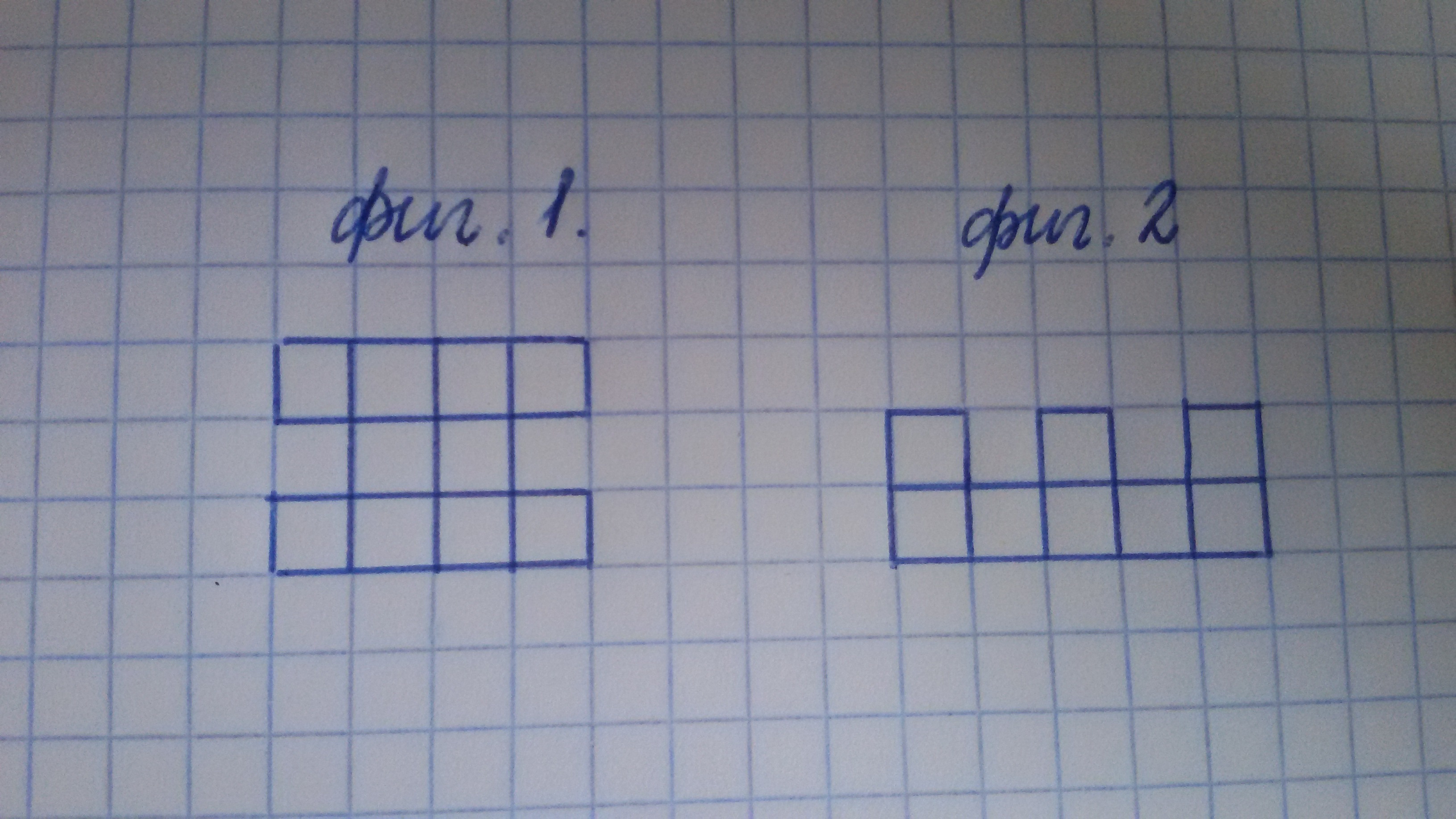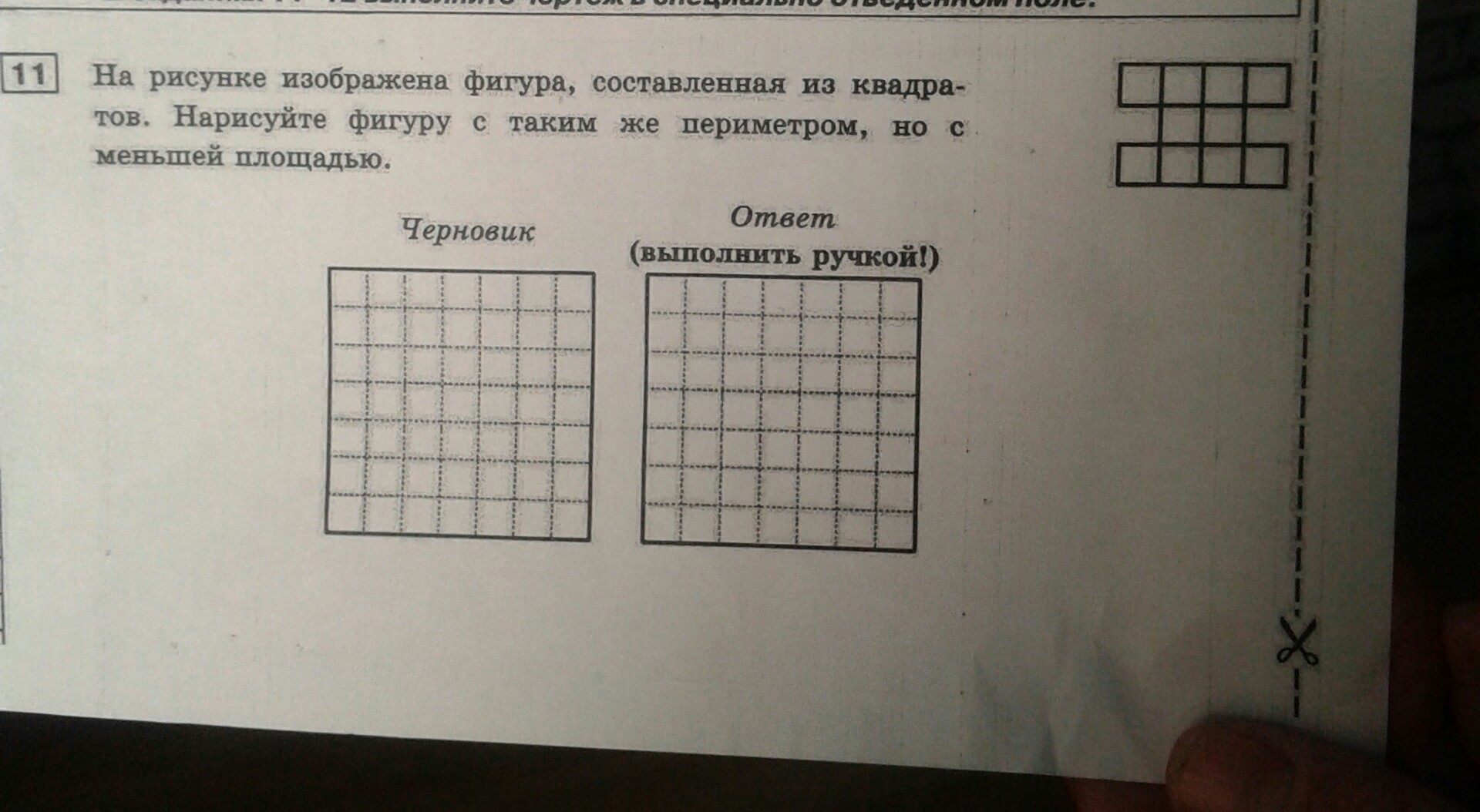 на рисунке изображена фигура составленная из квадратов. Нарисуйте фигуру с таким же периметром, но с меньшей площадью