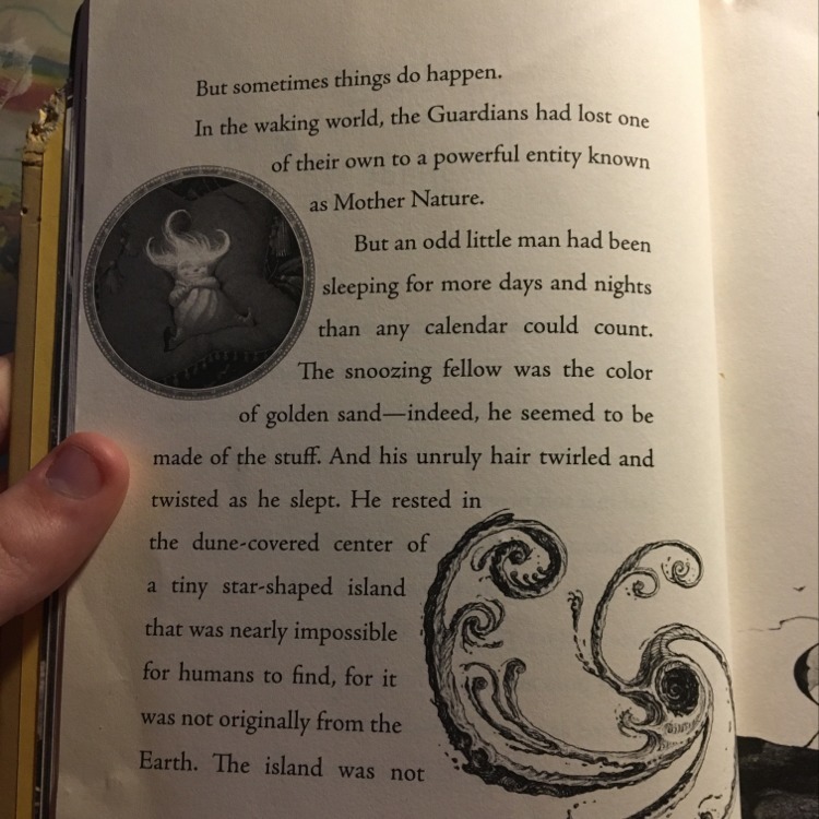 Но иногда что-то случается.В мире пробуждения Хранители потеряли одногосвоей могущественной сущности, известнойкак мать-природа.Но странный маленький человек былспать больше дней и ночейчем мог рассчитывать любой календарь.Тот дремлет парень был цветиз золотого песка действительно, он, казалось, былсделаны из этого материала. И его непослушные волосы закручены изакрученный, когда он спал. Он отдыхал в,центр, покрытый дюнамикрошечный остров в форме звездыэто было почти невозможнодля людей, чтобы найти, для негоне был первоначально отземля. Острова не было