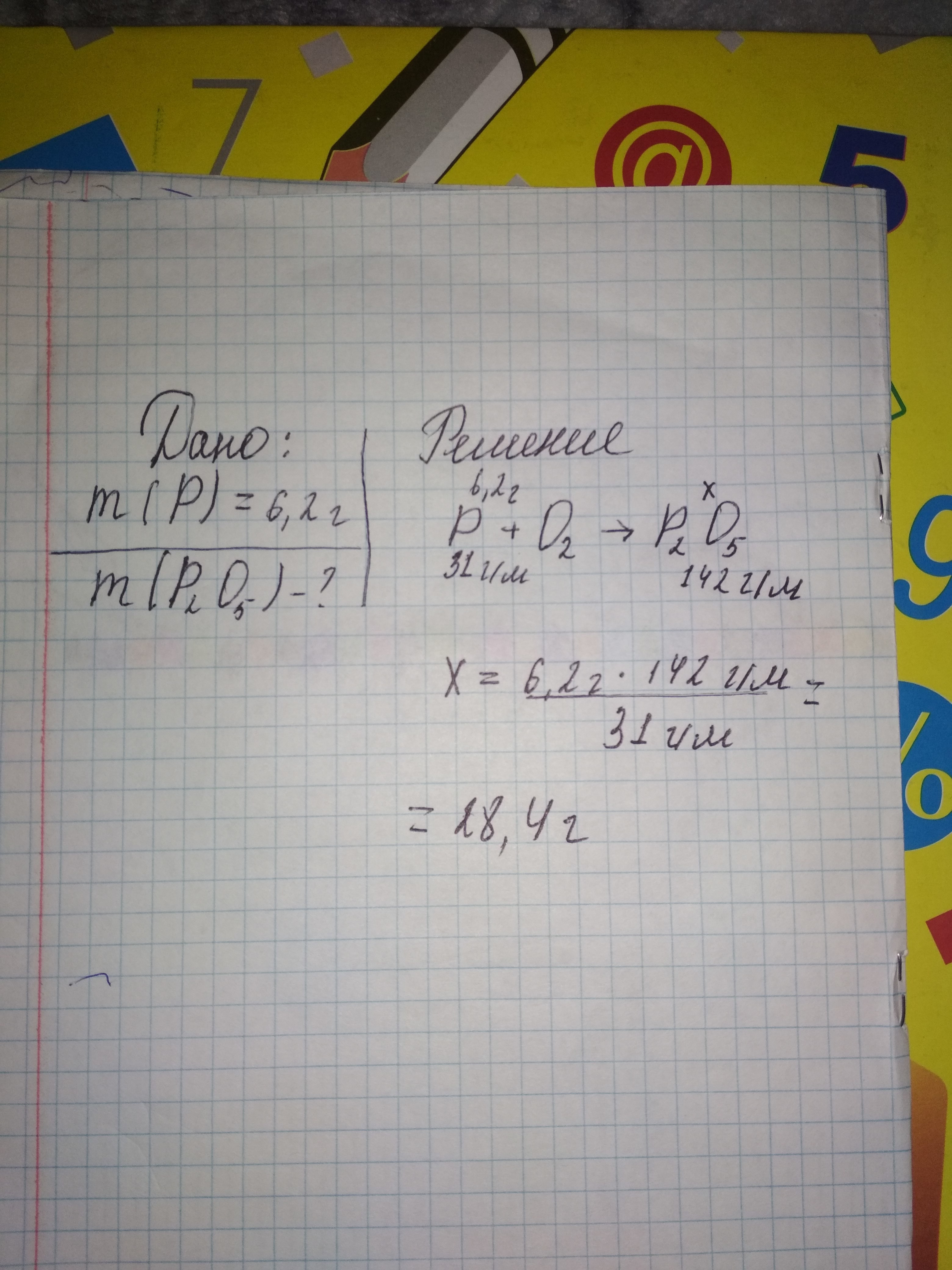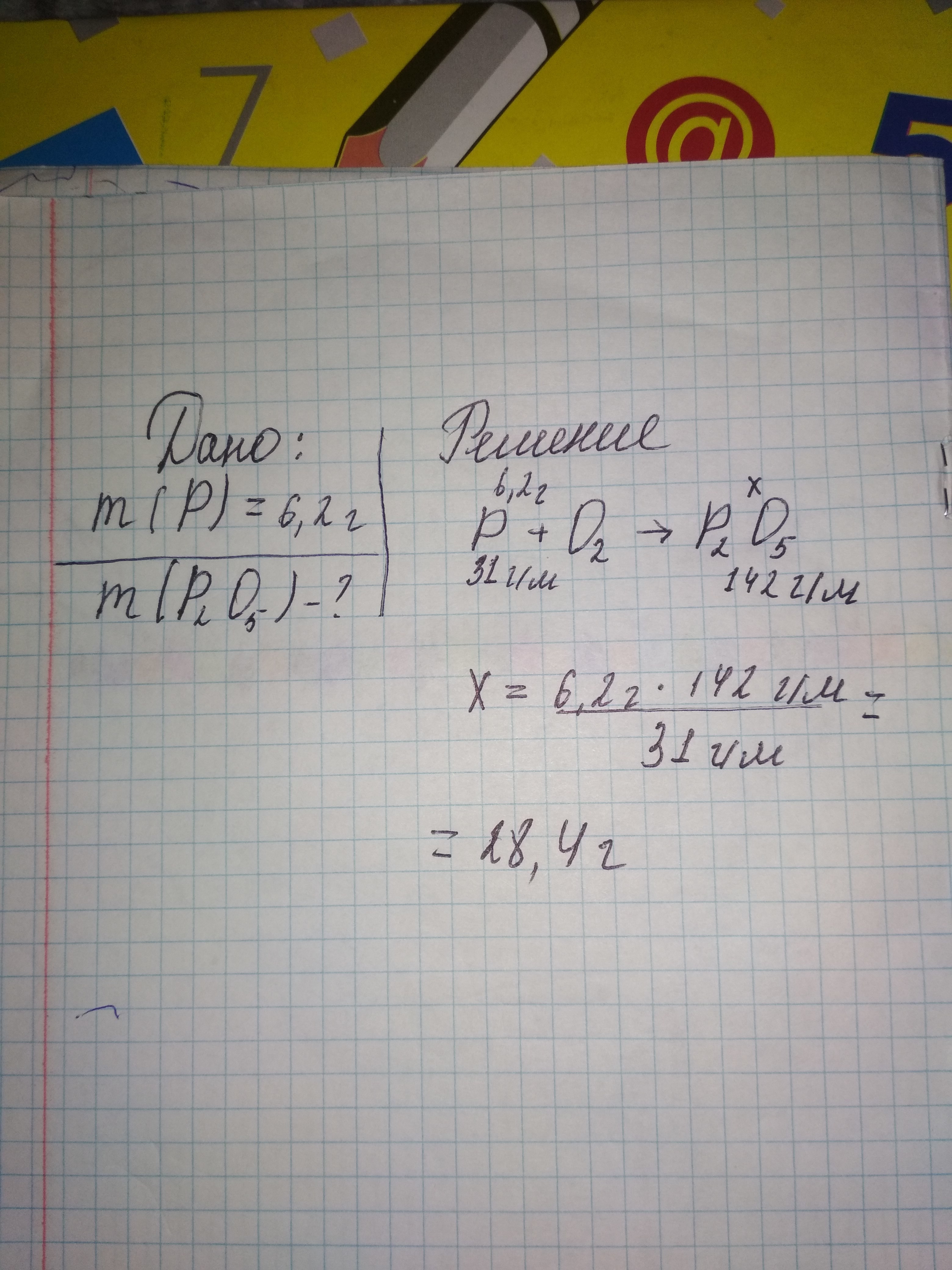 Какая масса оксида фосфора образуется при горении 6,2г фосфора? Ответ на фото