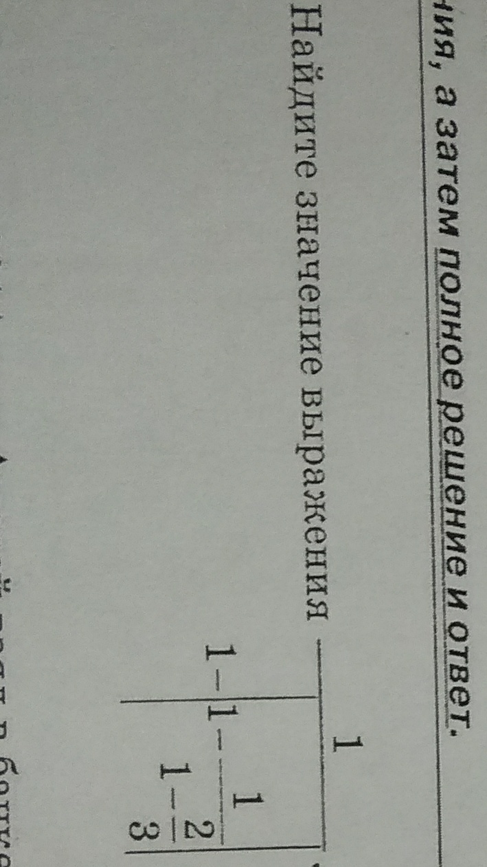 cfrac{1}{1-|1- frac{1}{1- frac{2}{3} } |} = cfrac{1}{1-|1- frac{1}{ frac{1}{3} } |} =cfrac{1}{1-|1- 3 |} =cfrac{1}{1-|-2 |} =cfrac{1}{1-2} = \\\ =cfrac{1}{-1} =-1