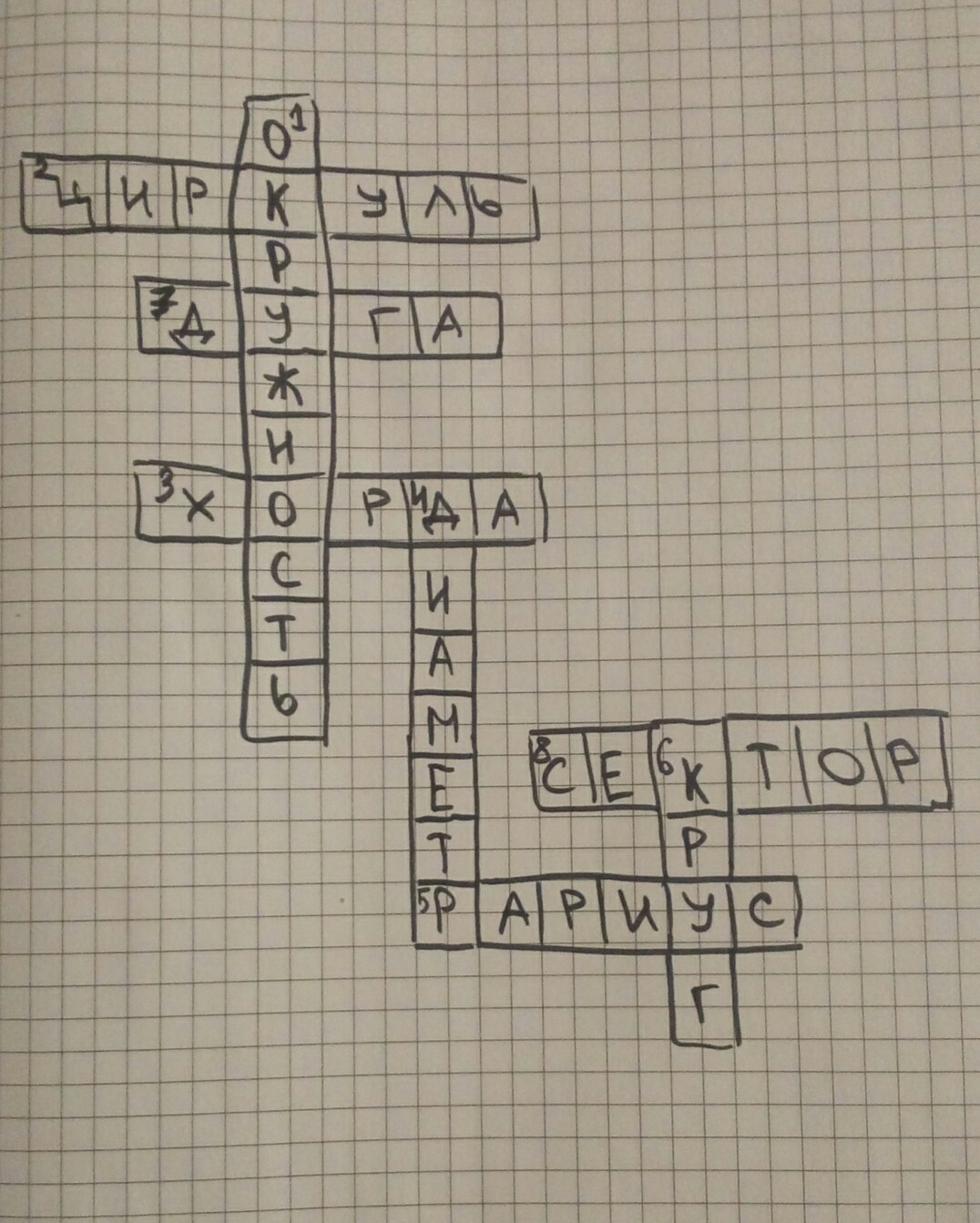 5) Отрезок, который соединяет центр окружности с точкой на окружности (радиус)