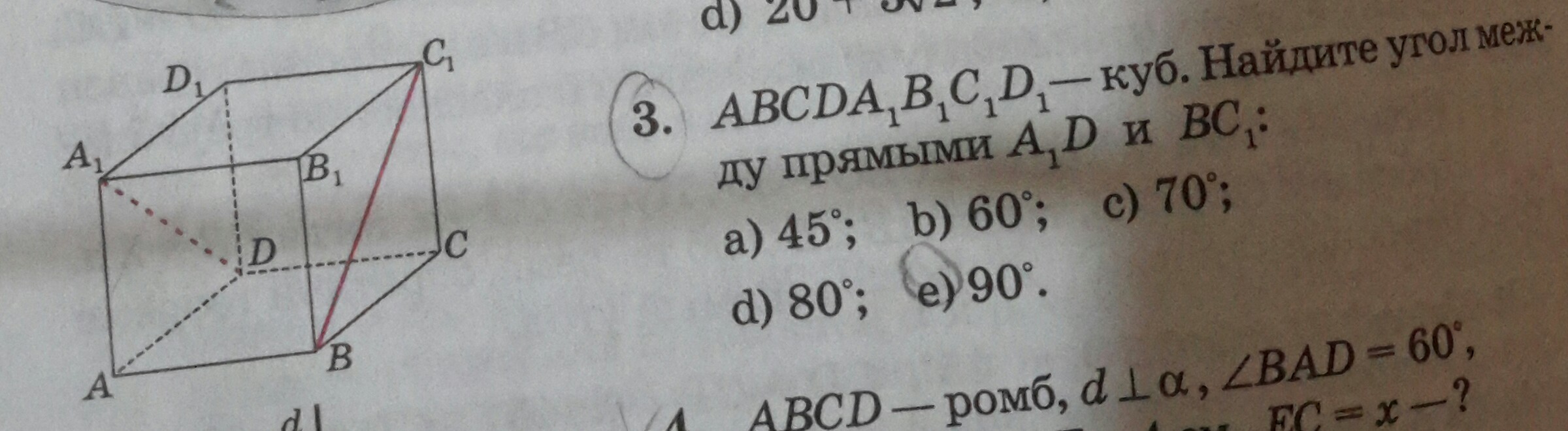 Так как это куб, то диагонали каждой грани - диагонали квадрата, угол = 90