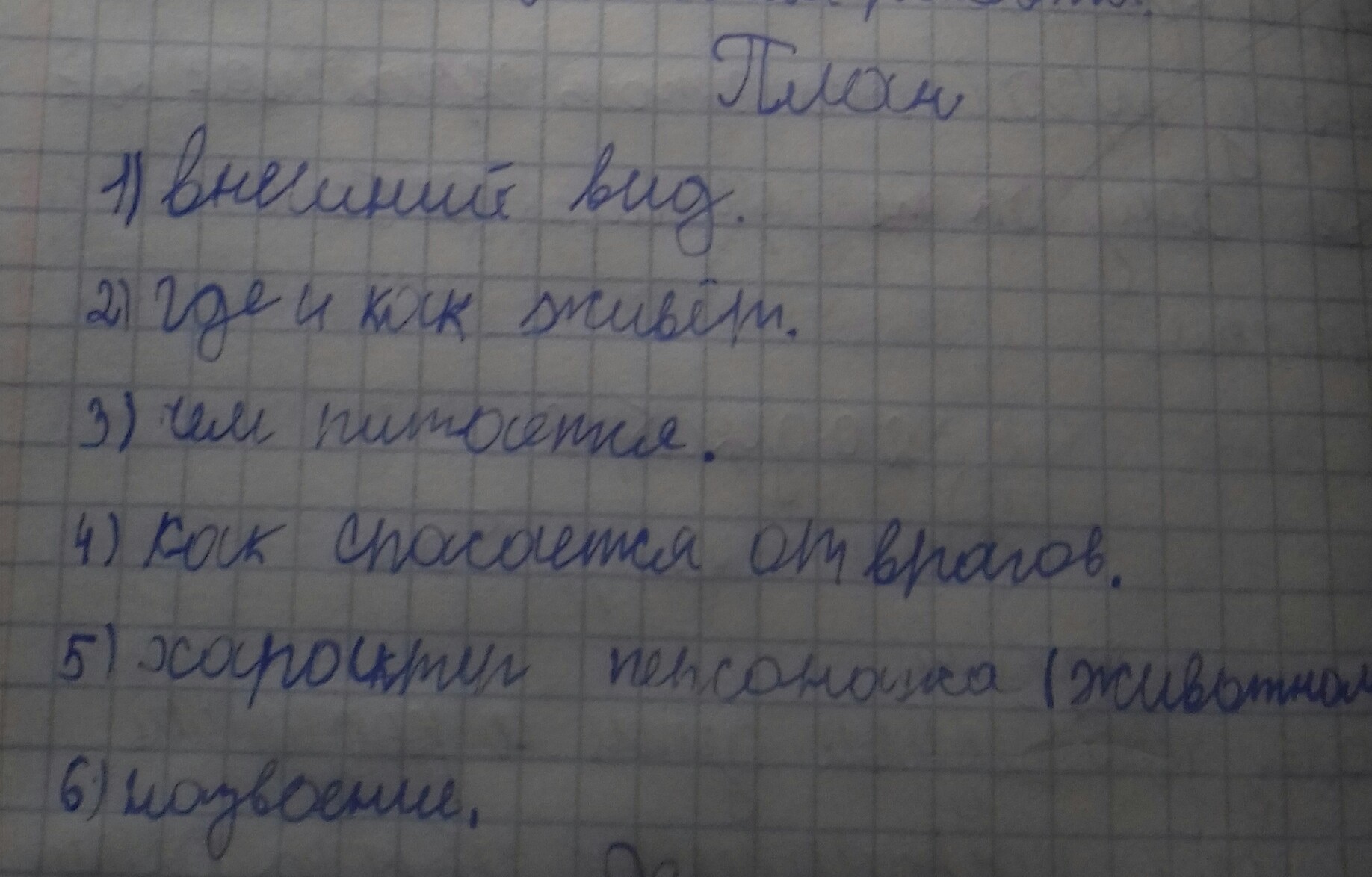 напишите сочинение по плану должно быть не домашнее животное а лесное животное может быть лиса и.т.д