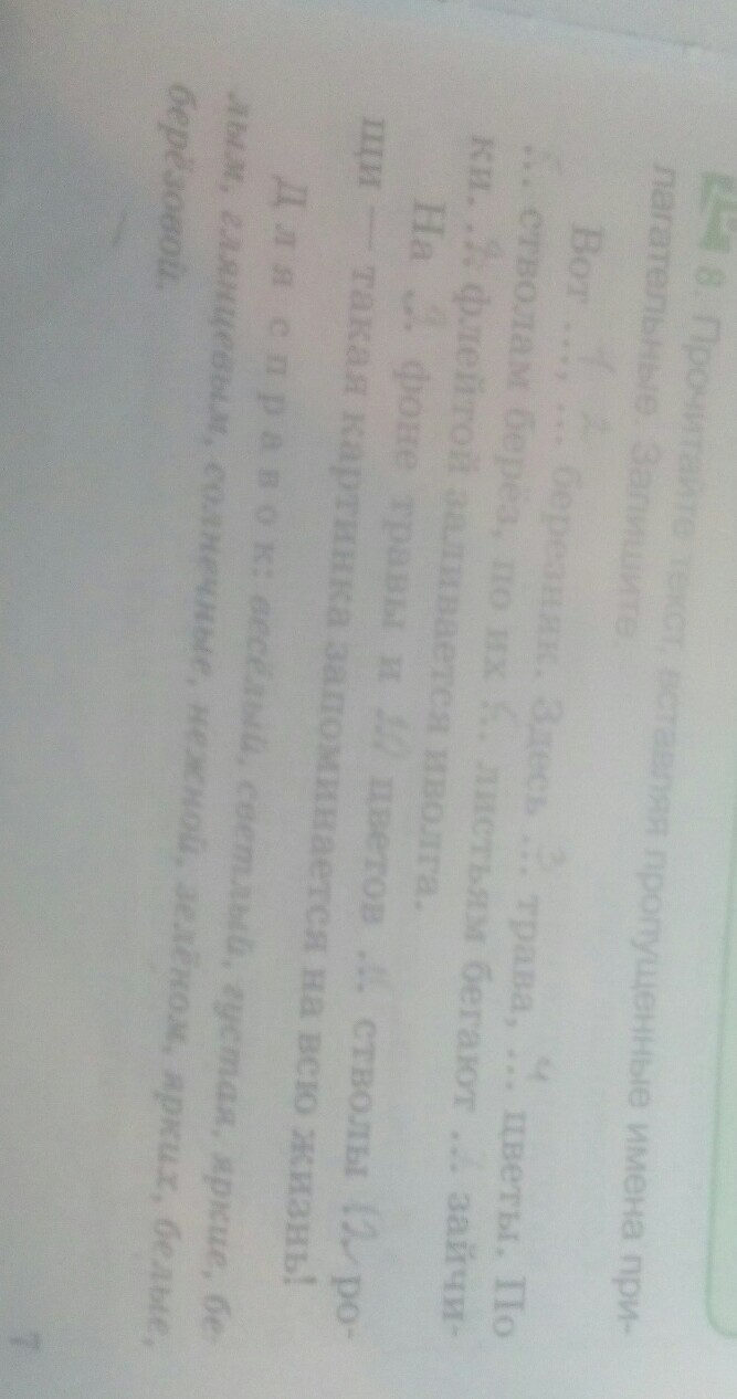Вот веселый,светлый березняк.Здесь густая трава,яркие цветы.По белым стволам берез,по их глянцевым листьям бегают солнечные зайчики.Нежной флейтой заливается иволга.