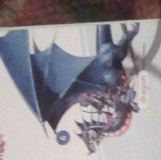 There’s a huge dark blue dragon is laying in the ground. It has beautiful powerful wings with long thorns onto them. His neck and stomach are barely red. Dragon’s mouth is open like he’s going to roar .