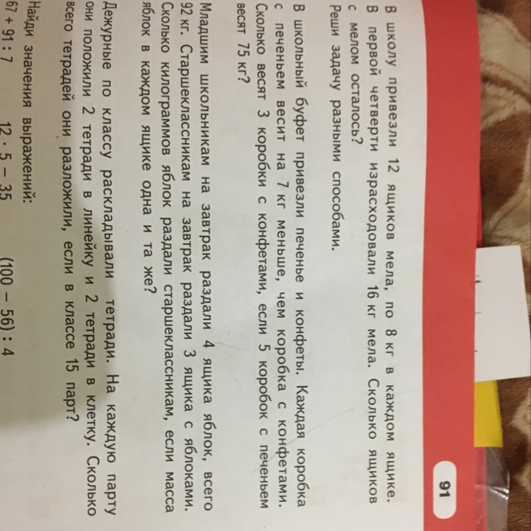 Каждая коробка с печеньем весит на 7 кг меньше, значит вес конфет должен быть больше