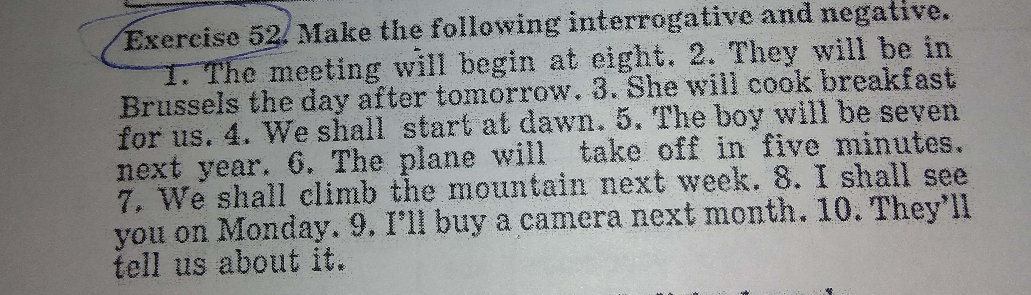 7. We shall not climb the mountain next week. Shall we climb the mountain next week?