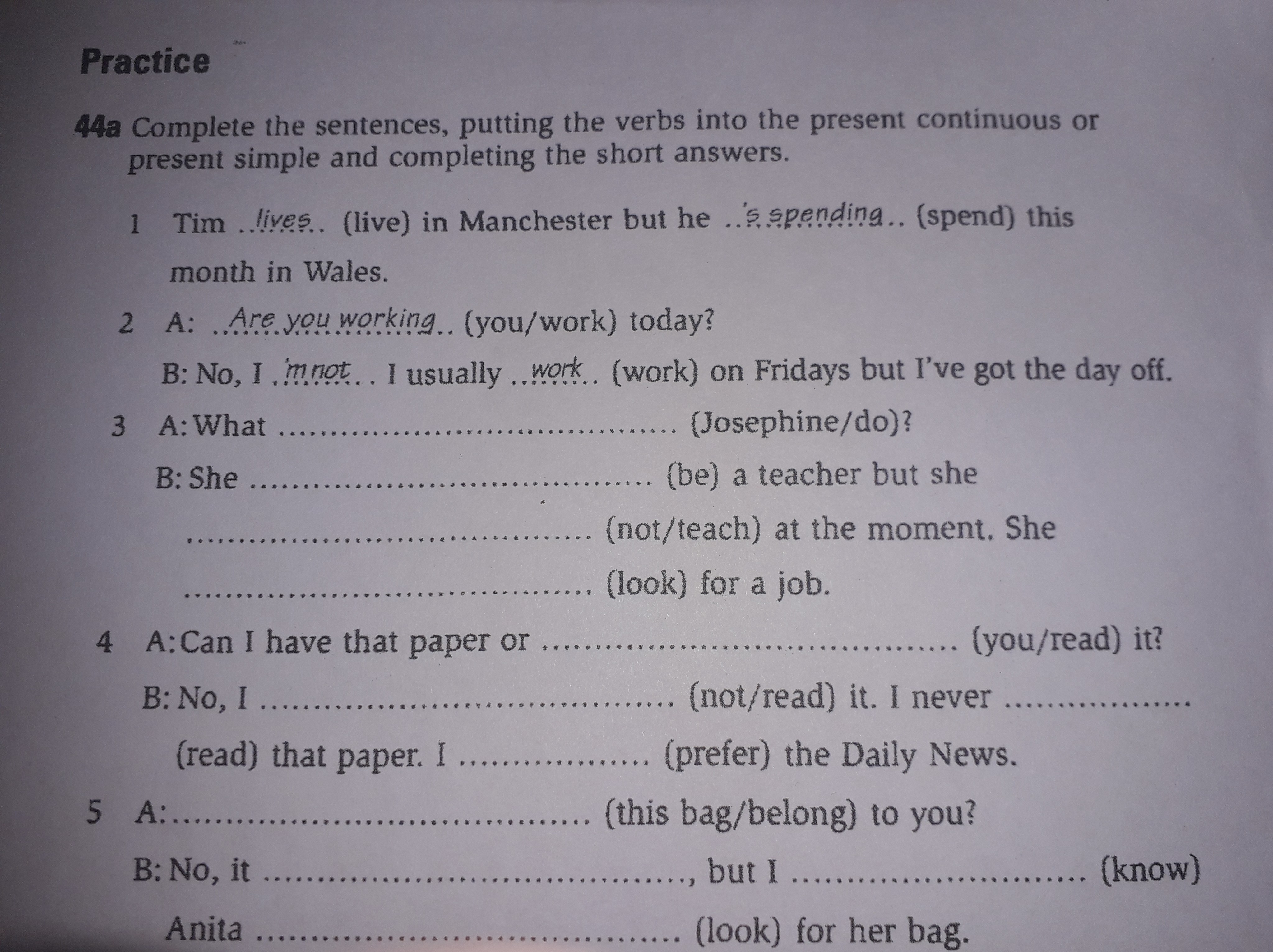 5. - Does this bag belong to you? - No, it doesn't, but i know Anita is looking for her bag.