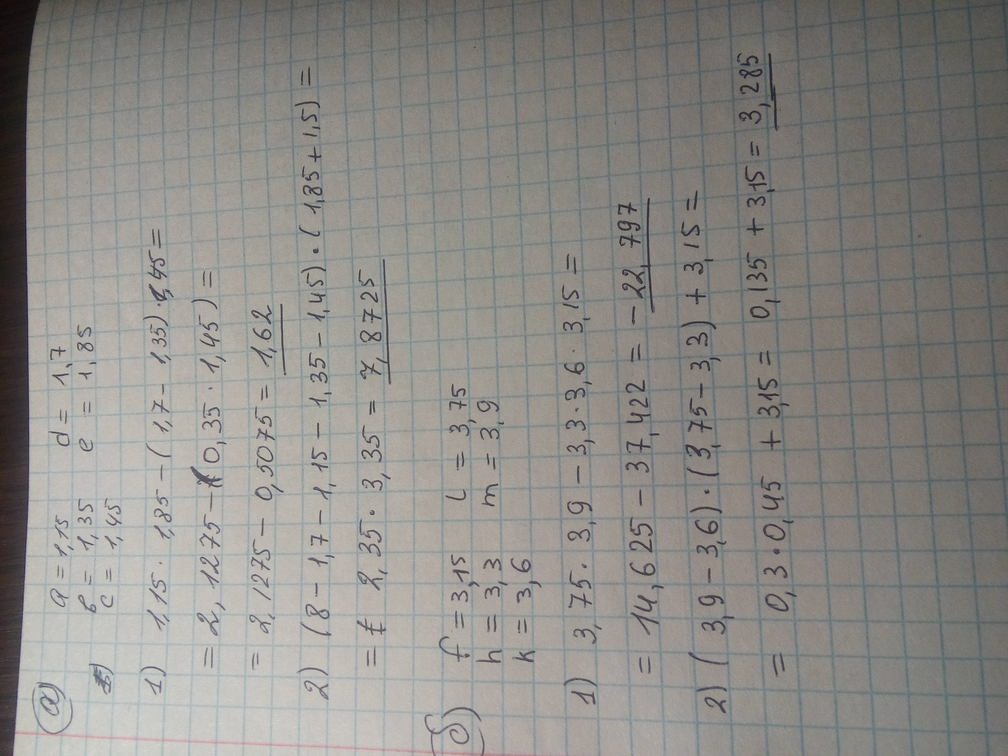 1) 1,15*1,85-(1,7-1,35)*1,45=2,1275-0,35*1,45=2,1275-0,5075=1,62