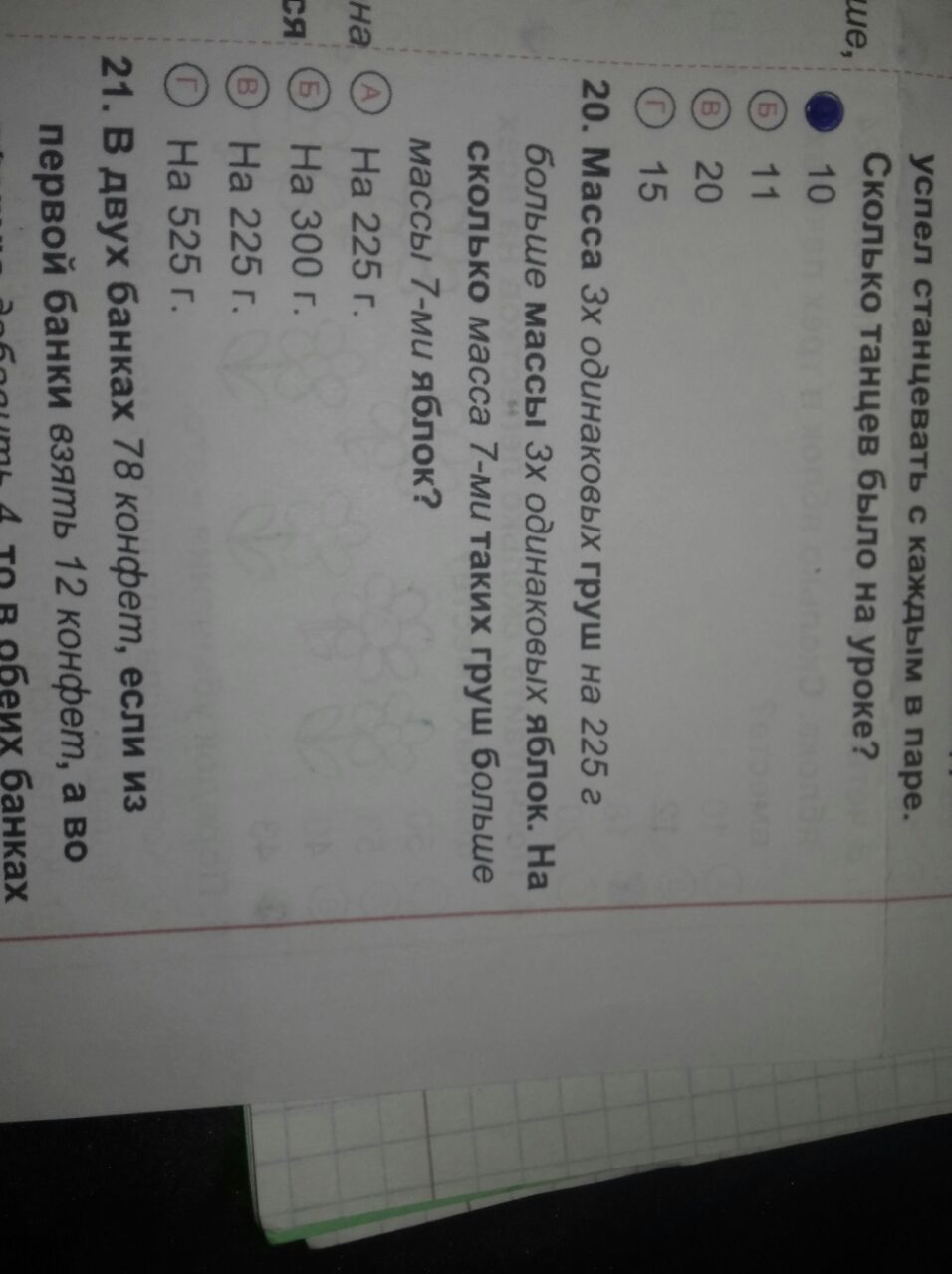 1) 225:3=75 (гр) перевес 1 груши над яблоком
