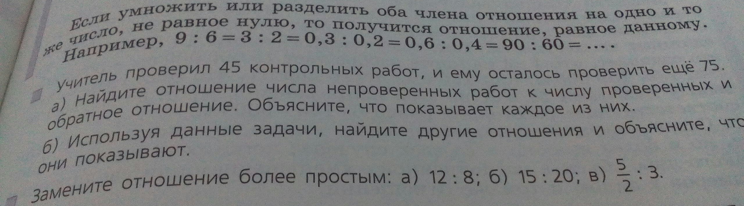 a) 75/45 = 15 /9 = 5/3 - отношение проверенных работ к непроверенным