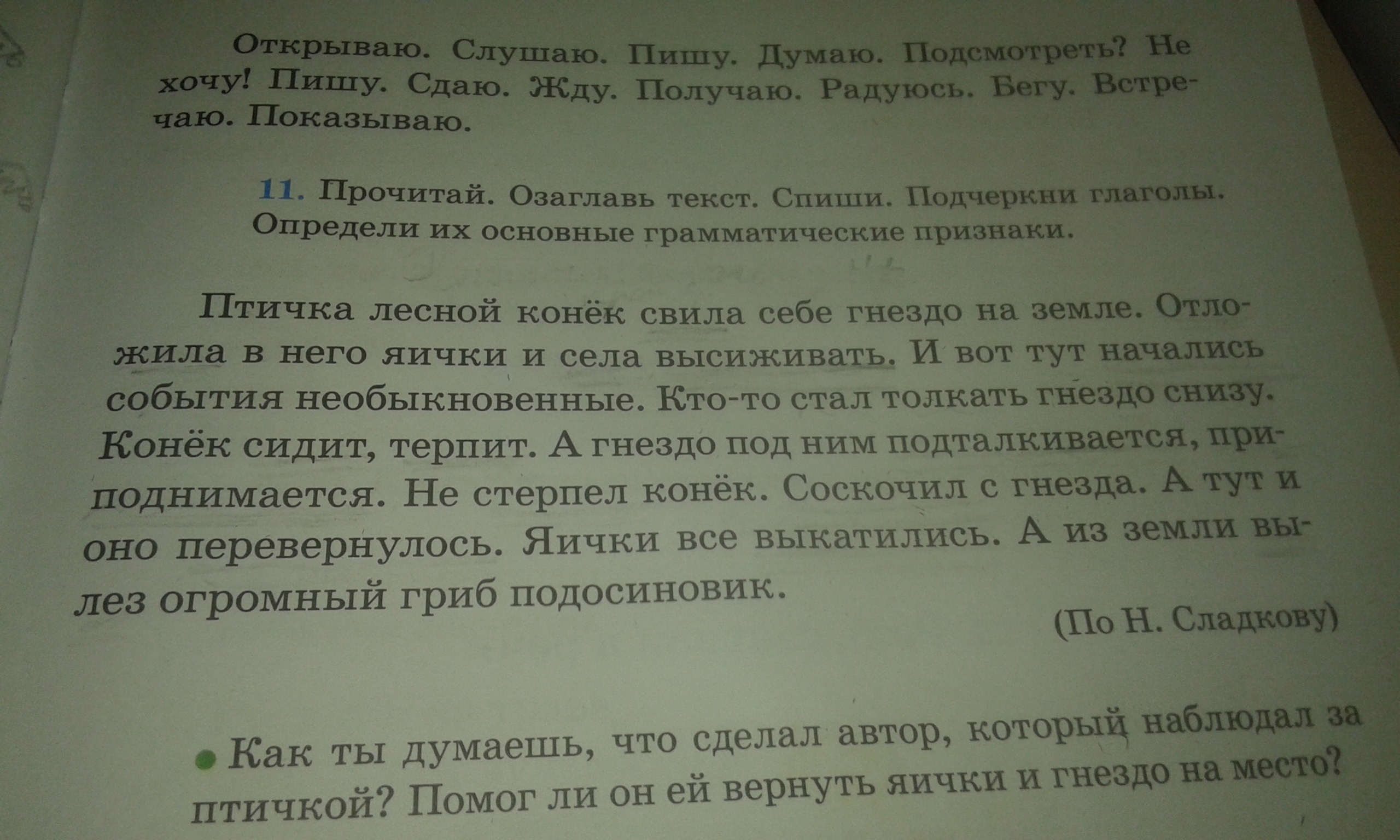 Прочитай подчеркни глаголы определи их основные грамматические признаки