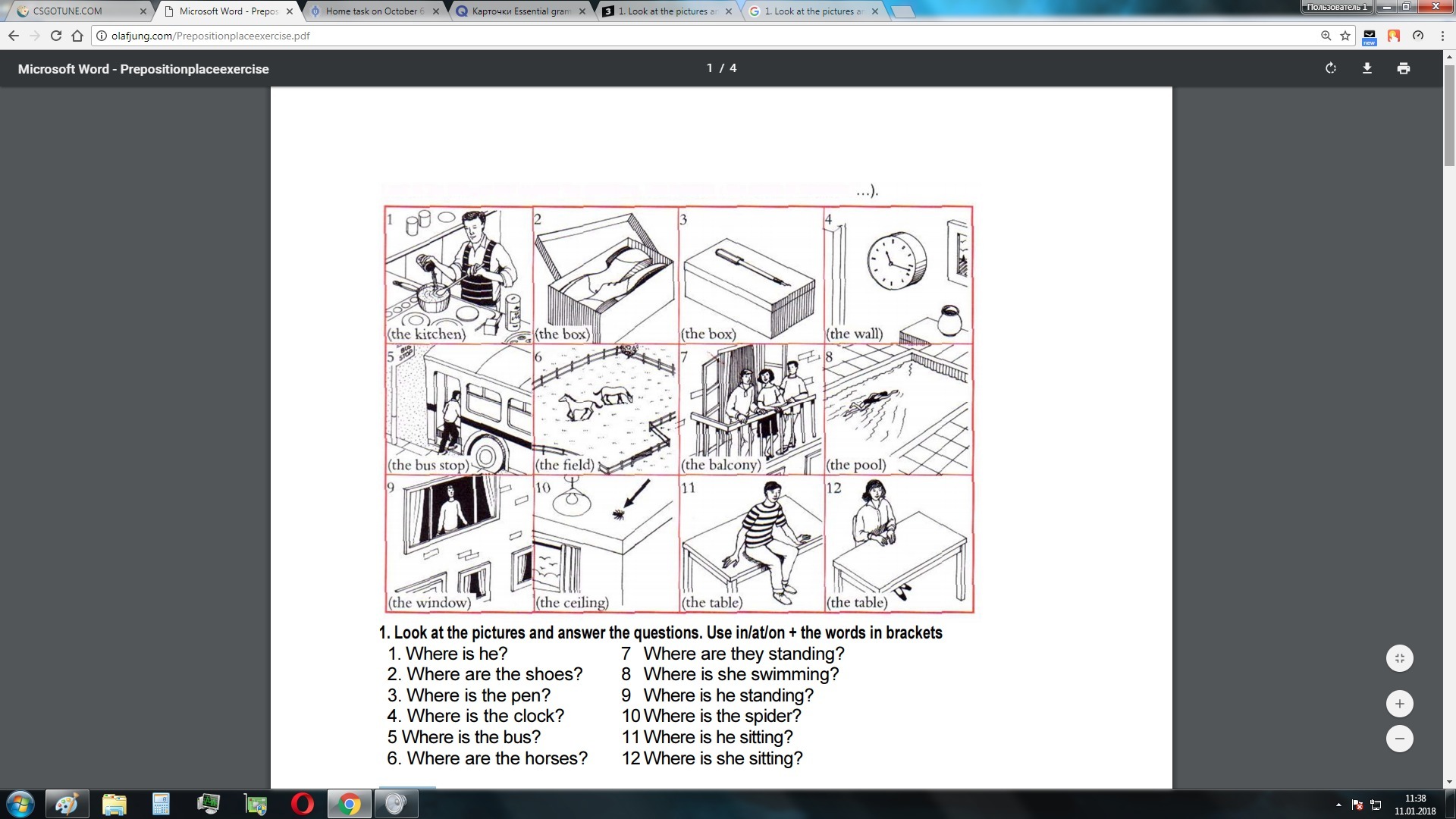 1. Look at the pictures and answer the questions. Use in/at/on + the words in brackets