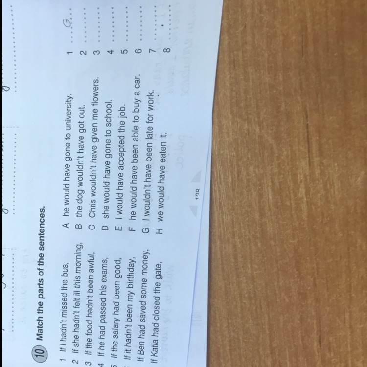 1G, 2D, 3H, 4A, 5E, 6C, 7F, 8B