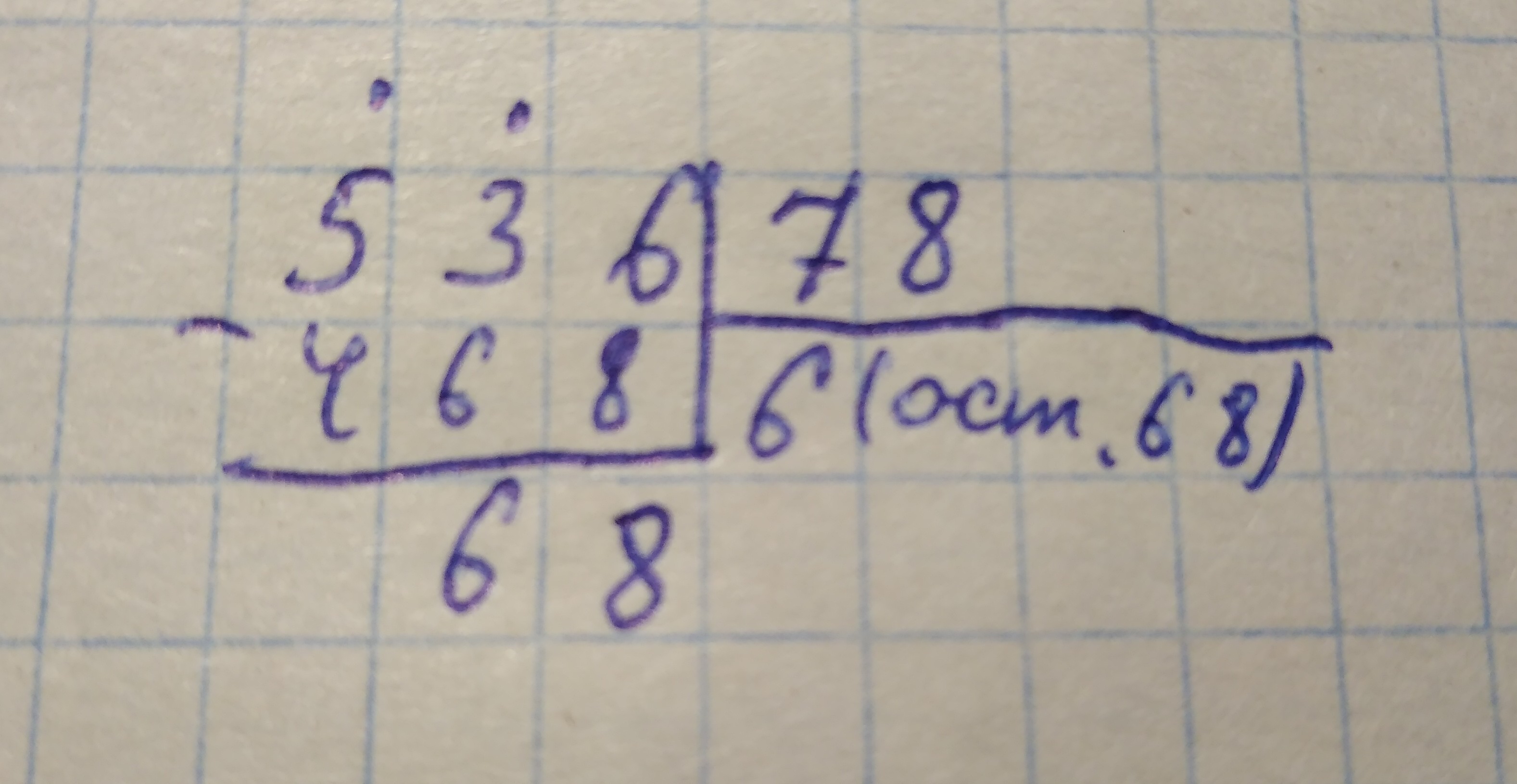 Вот, при вычитании 468 (мы его получили умножением на 6), получается остаток 68