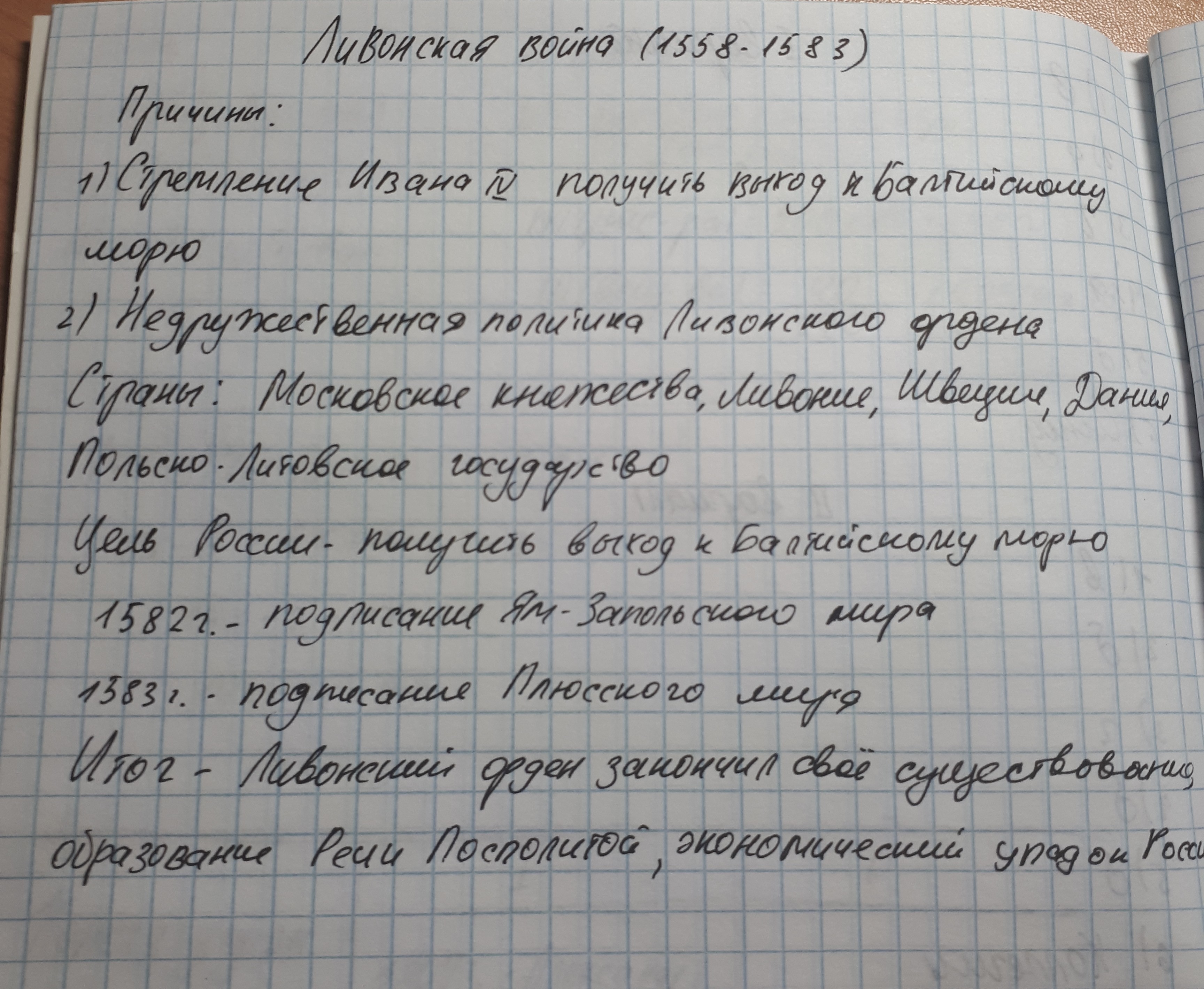 План разбора Ливонской войны 1.причины (1-2)2. воюющие страны 3. цели старон 4. ход событий 5. итог войны помогите пж )