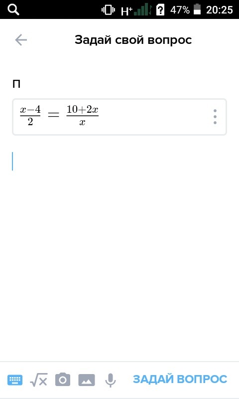 Перемножаем крест-накрест (x-4)x=2(10+2x).Переносим всё в левую часть (x-4)x-2(10+2x)=0.Раскрываем скобки x^2-4x-20-4x=0 x^2-8x-20=0,находим дискриминант D=b^2-4ac,D=8^2+4*1*20=144.x1= (8 - √144)/2=-2,x2=(8+√144)/2=10,x1=-2 x2=10