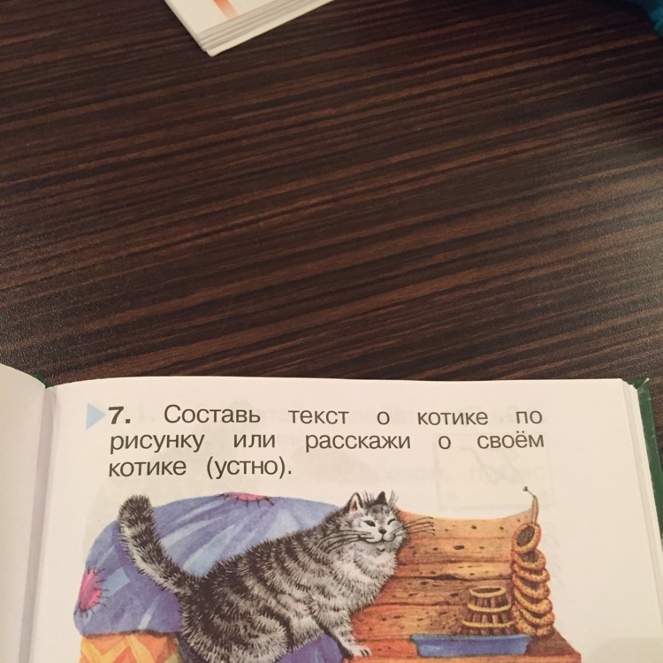 У нашего котика серая, словно пепел шерсть, длинные чёрные усики, и длинный хвост. Мы все очень любим нашего кота, и очень рады, что он у нас есть!