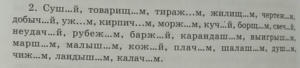 2.Ужом кирпичом моржом борщом рубежом карандашом малышом шалашом, чижом, калачом.