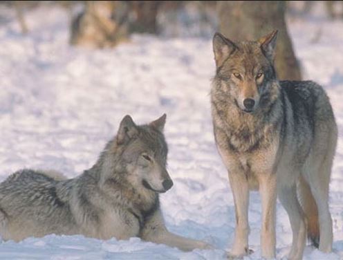 Food: grey wolves hunt mostly large, hoofed animals including different kinds of deer, mountain goats, and elk. They will also hunt and eat hares, beavers, birds and fish. (Серые волки охотятся в основном на крупных копытных животных, включая оленей, горных козлов и лосей. Они также охотятся на зайцев, бобров, птиц и рыб.)