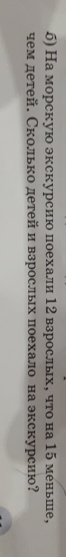 Взрослых - 12 ч. Детей -? ч. на 15 больше